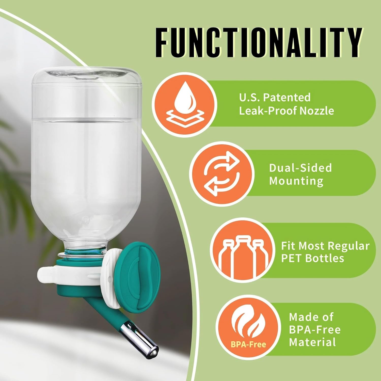 - U.S patented leak-proof nozzle: Prevents water leakage effectively, ensuring a wet-free and mess-free living area for pets