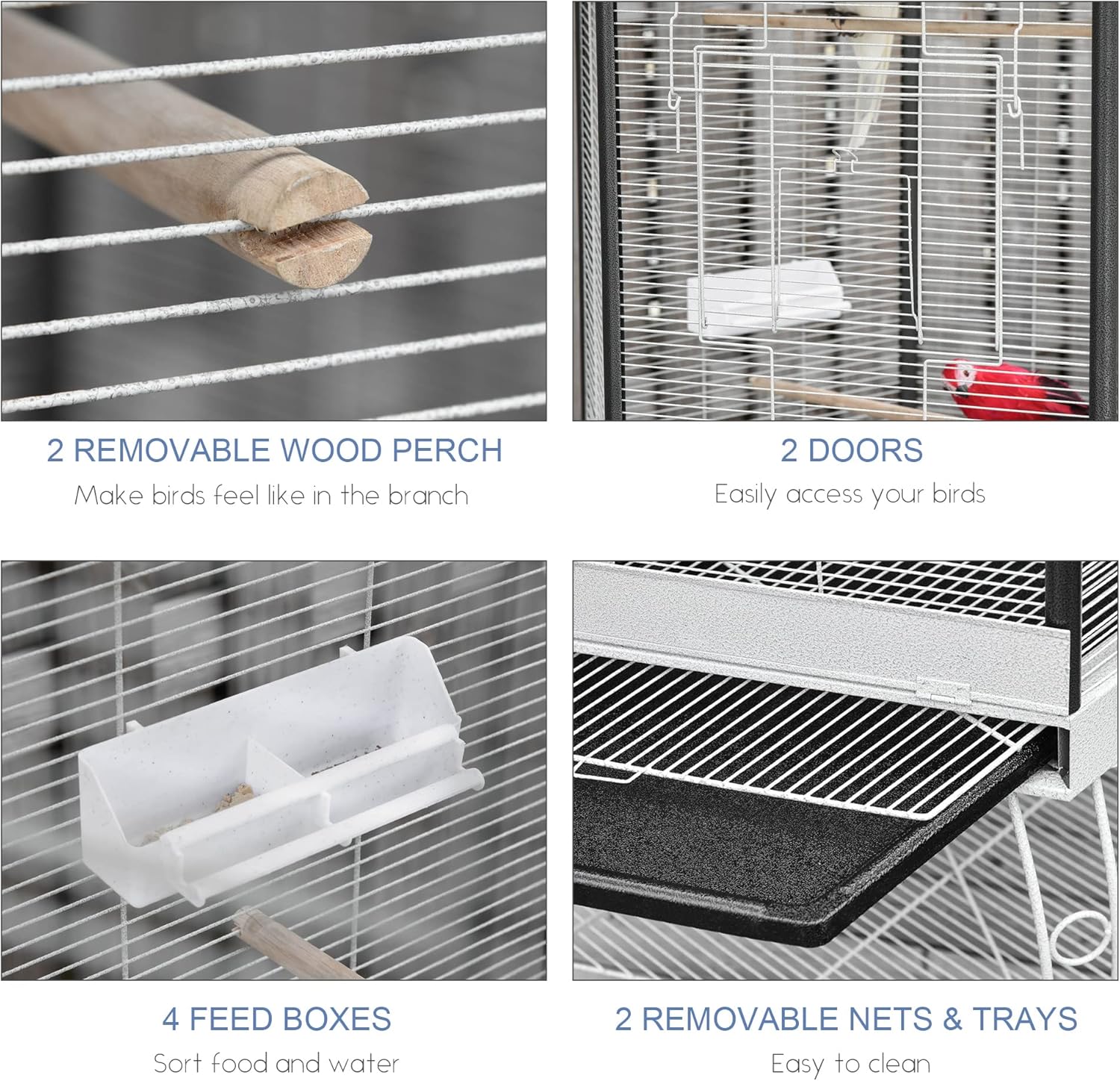 - Convenient Access: With 2 large doors, you'l be able to easily access your bird'food, water, and the inside area.