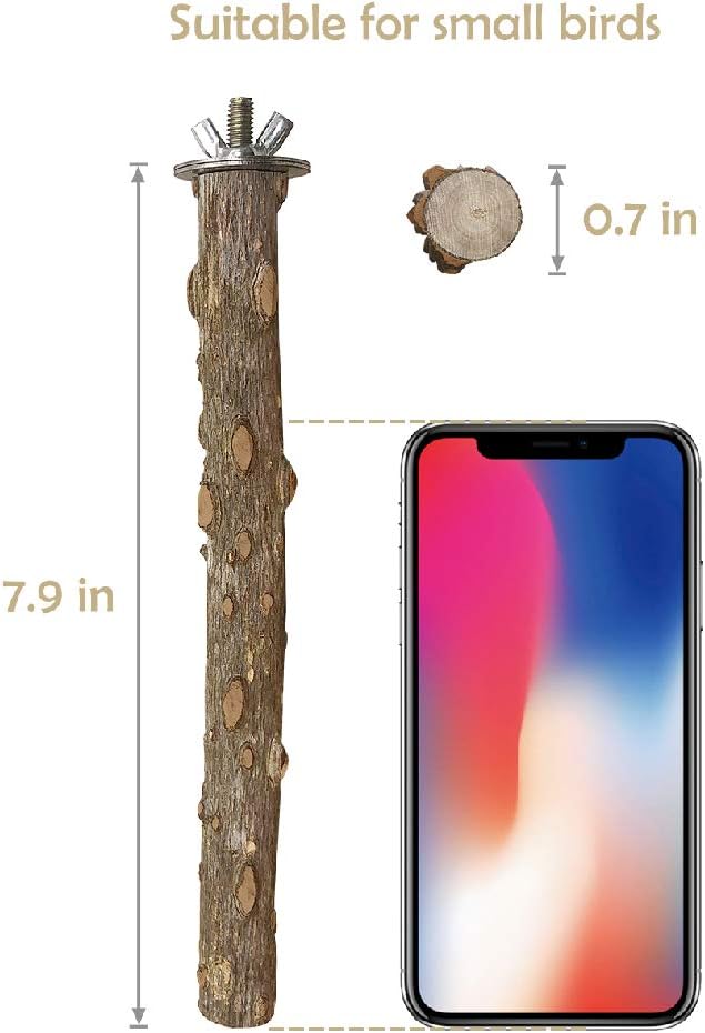 - Recommend Small Animals: The branch perch length is 8 inch, width is 5 inch; The wood perch length is 7.9 inch, thickness is 0.7 inch, suitable for budgies, parakeets, conure love bird and other small bird