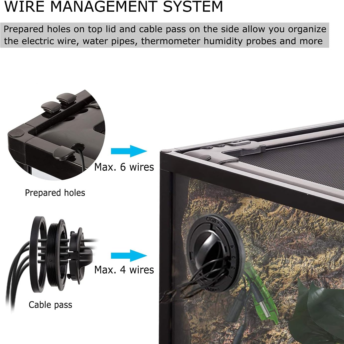 - ăAnti EscapeăSecurity buckle on the lid ensure the tank closed tightly, prevent your reptile amphibian chameleon pets from escaping. And the security lock avoid the doors open accidently by your kids and keep your kids safe.