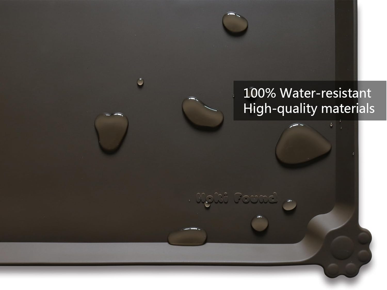 Hoki Found Large Silicone Pet Food Mats Tray - Non Slip Pet Dog Cat Bowl Mats Placemat - Dog Pet Cat Feeding Mat - Waterproof Dog Cat Food Mats -Pet Water Mats for Floors - Coffee