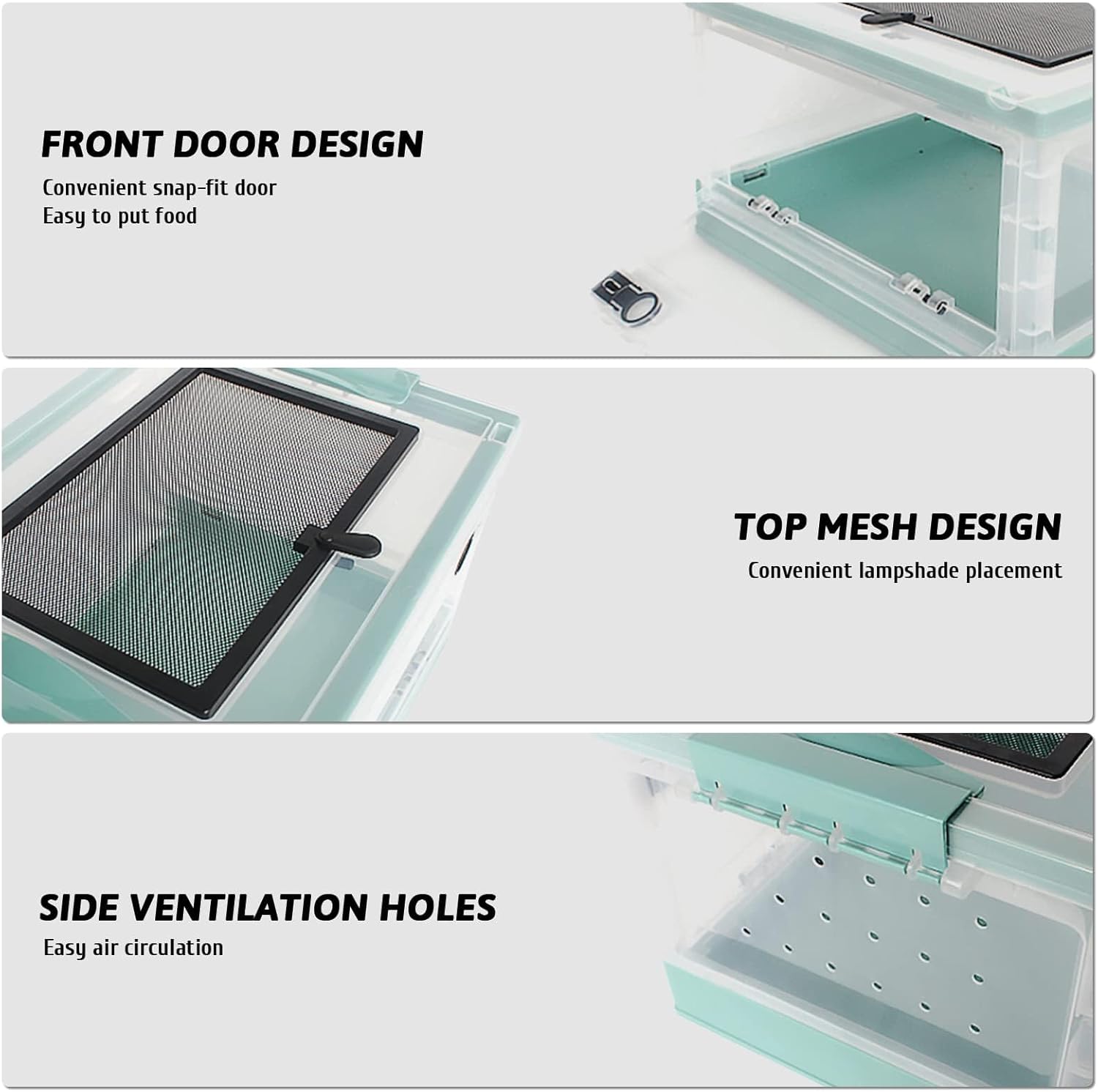 - Easy to Assemble: Very easy to install, only takes a few minutes to set up.If you want to travel with your pet, this tank is for you! Note: It is not recommended to feed crickets, worms, super worms and other feed