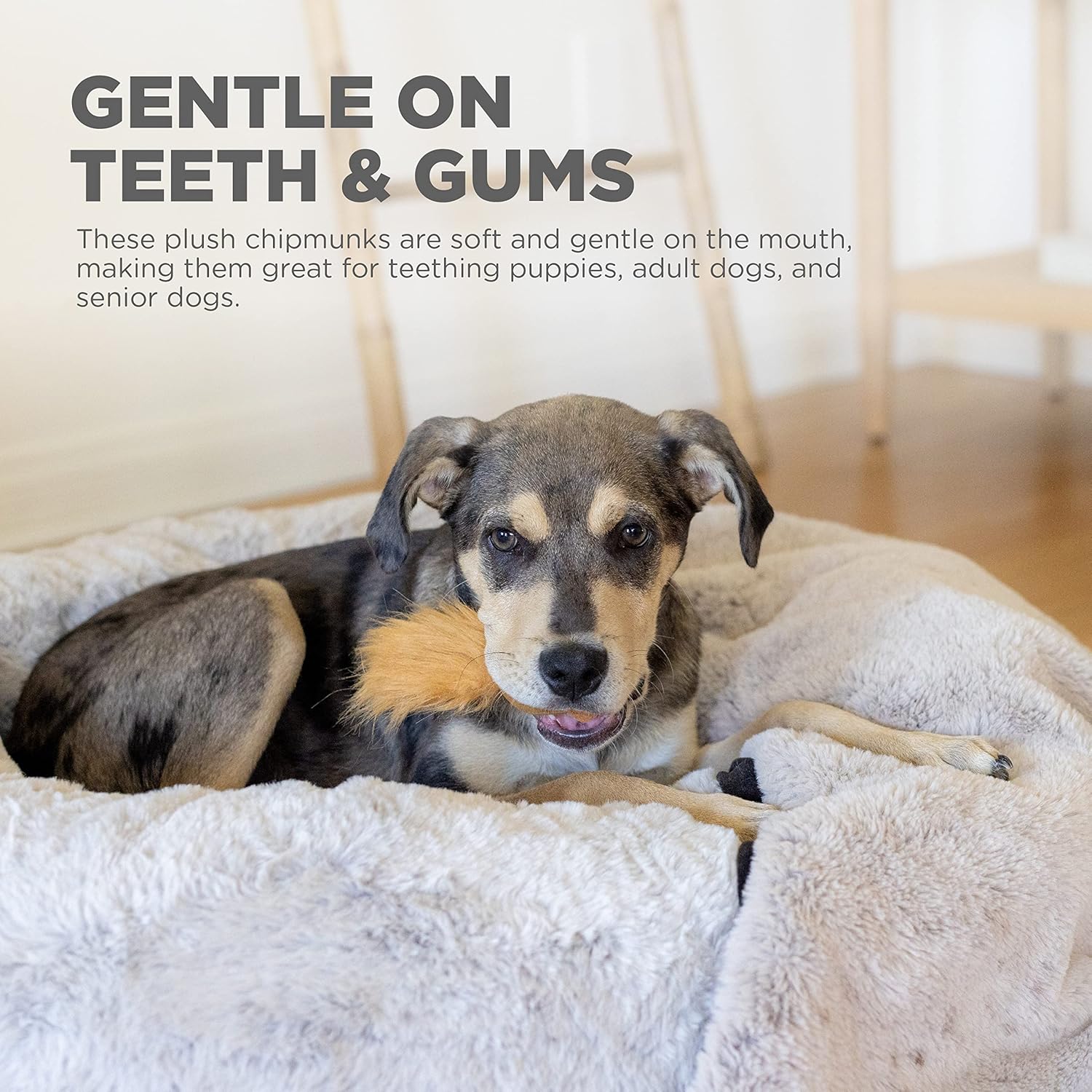 - GENTLE ON TEETH & GUMS: These plush chipmunks are soft and gentle on the mouth, making them great for teething puppies, adult dogs, and senior dogs.