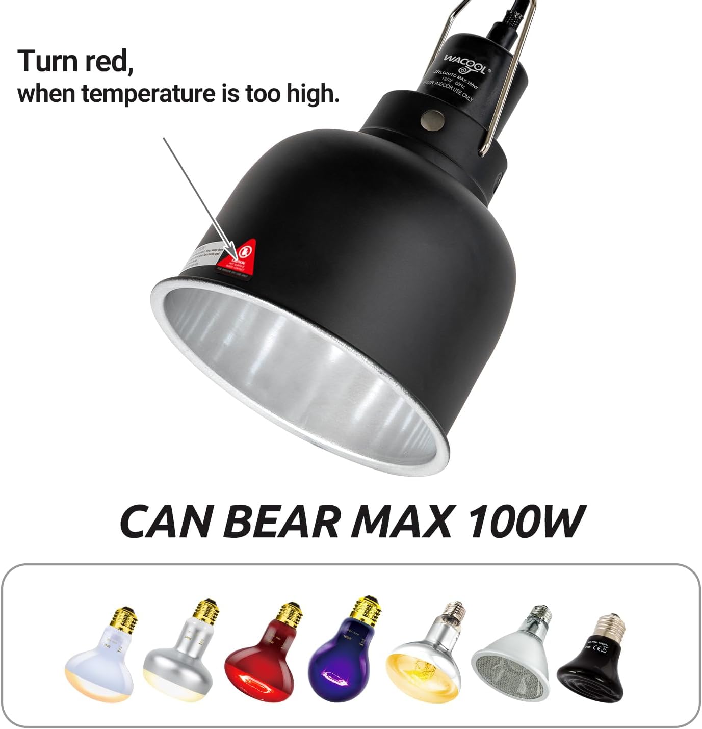 - Versatile Compatibility: This reptile lamp fixture is suitable for a wide range of reptiles, including tortoises, lizards, snakes, and more. It is also compatible with different heat lamp bulbs such as incandescent bulbs, ceramic heat emitters, and infrared bulbs (not included).(MAX.100W)