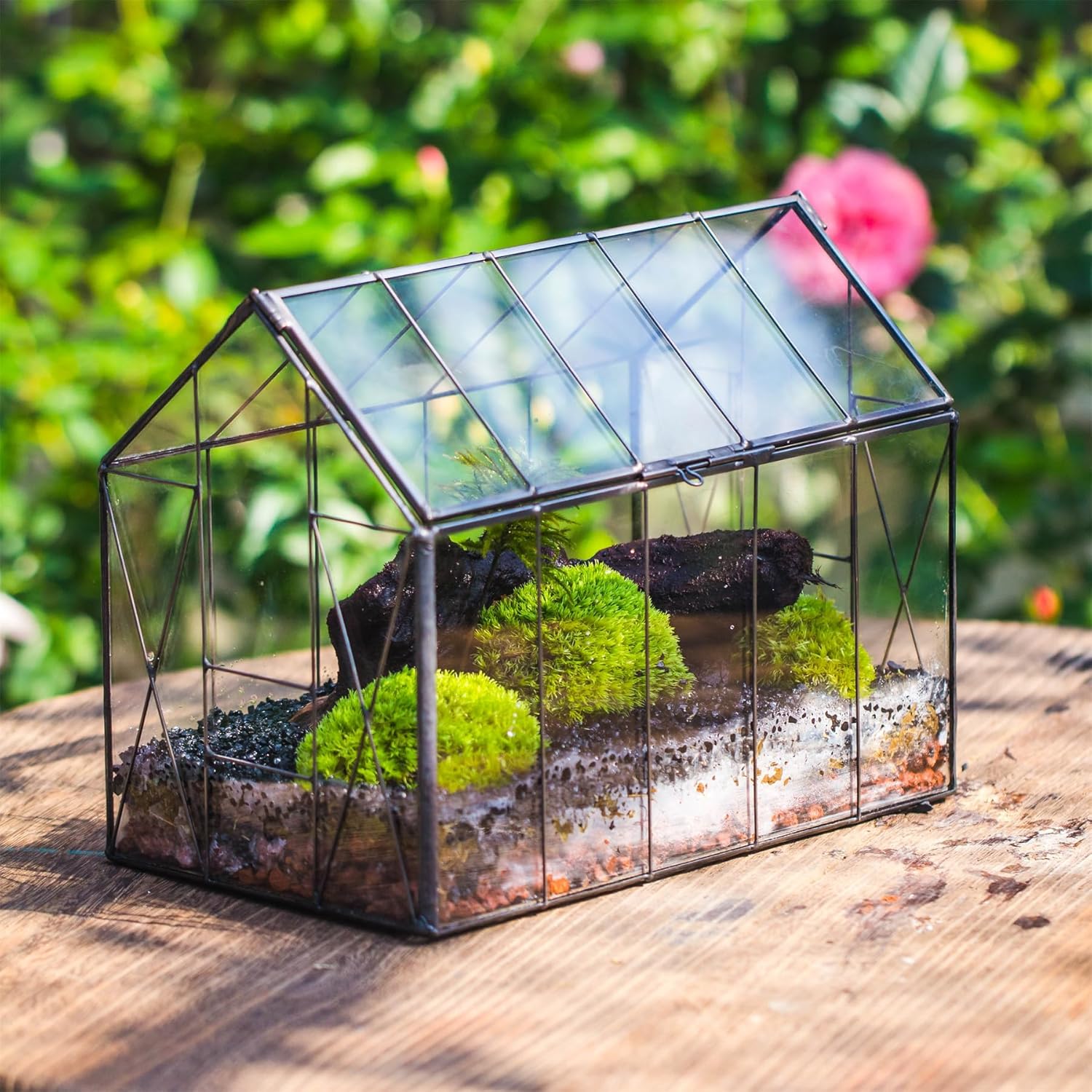 - This is a vintage style house shape geometric terrarium with swing lid, inspired by vintage old glass greenhouse. Victorian time, suitable for fern, small tropical plants, miniature fairy garden