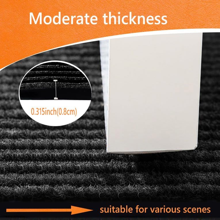 - [STURDY RUBBER BACKING]:The XSKDJS heavy-duty door mat features a about 0.32inch(8mm)ultra-thin design, allowing it to effortlessly glide under most doors without jamming or curling.Crafted with a sturdy natural rubber backing, our product offers higher tensile strength, increased tear resistance, and less odor compared to synthetic rubber.
