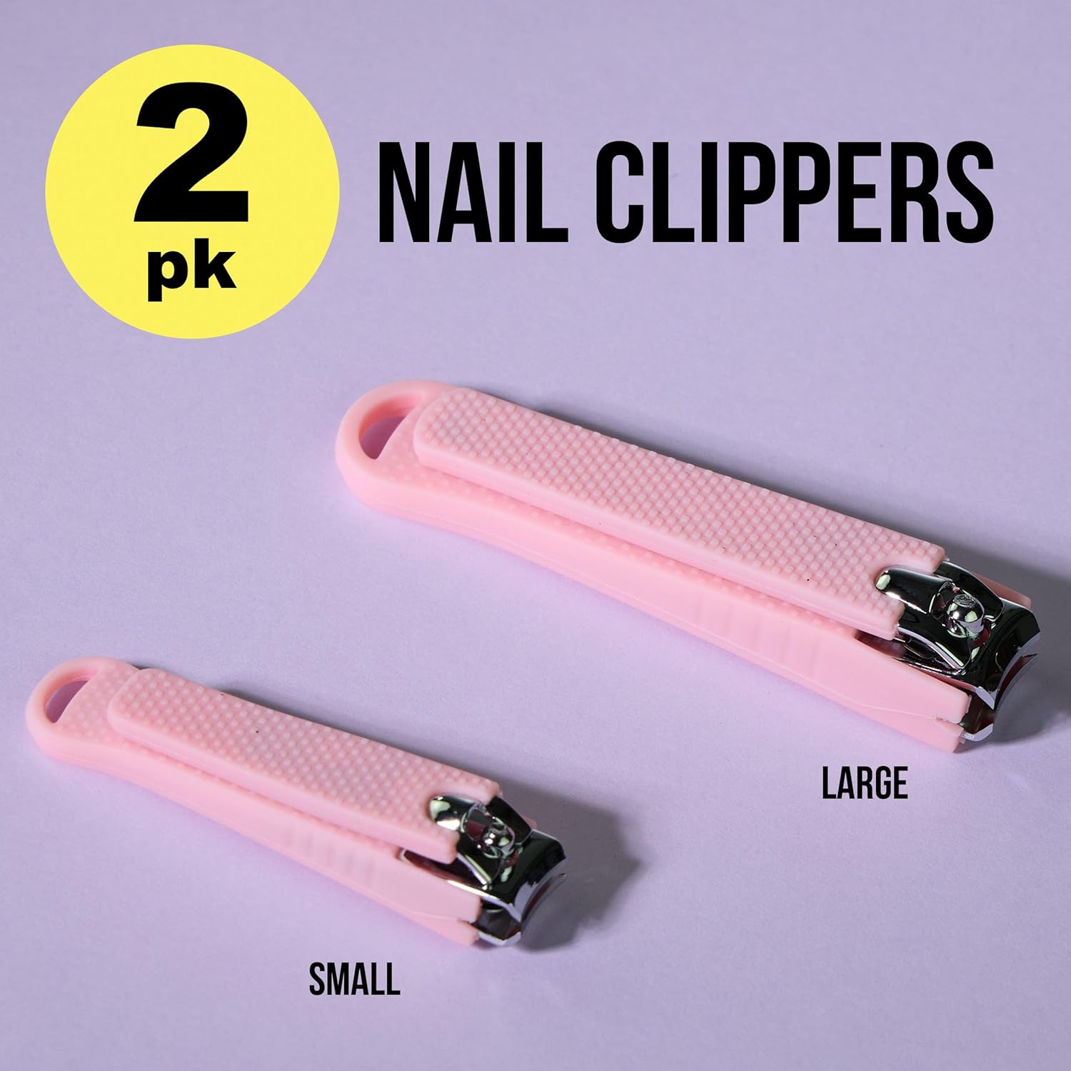Nail Clippers Set - 2pc Soft Touch Pink Nail Clipper Value Pack, Big & Small Precision Nail Clippers Pack, Essential Manicure & Pedicure Tools