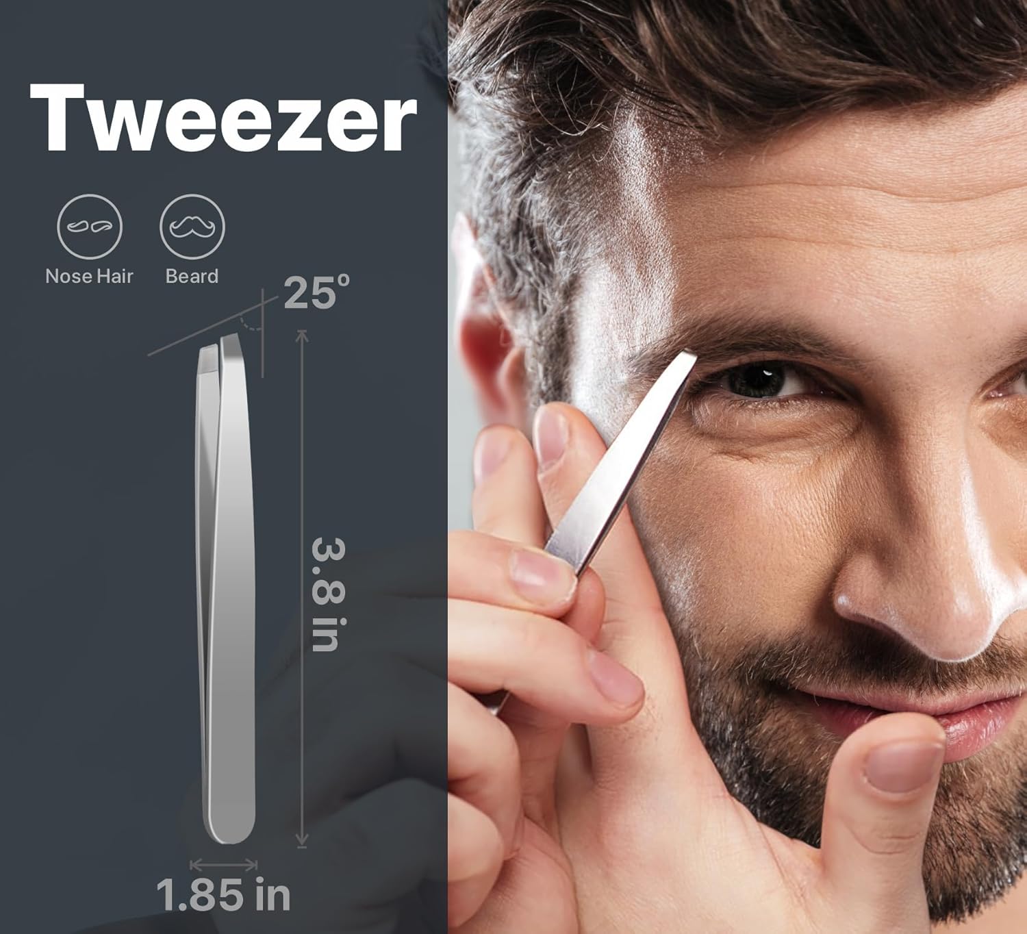 - [Fingerprint-Resistant]:Our nail clippers and scissors boast a sandblasted finish that resists fingerprints, ensuring a clean grip. The satin-finished tweezer and nail file add comfort and style to this comprehensive grooming set.