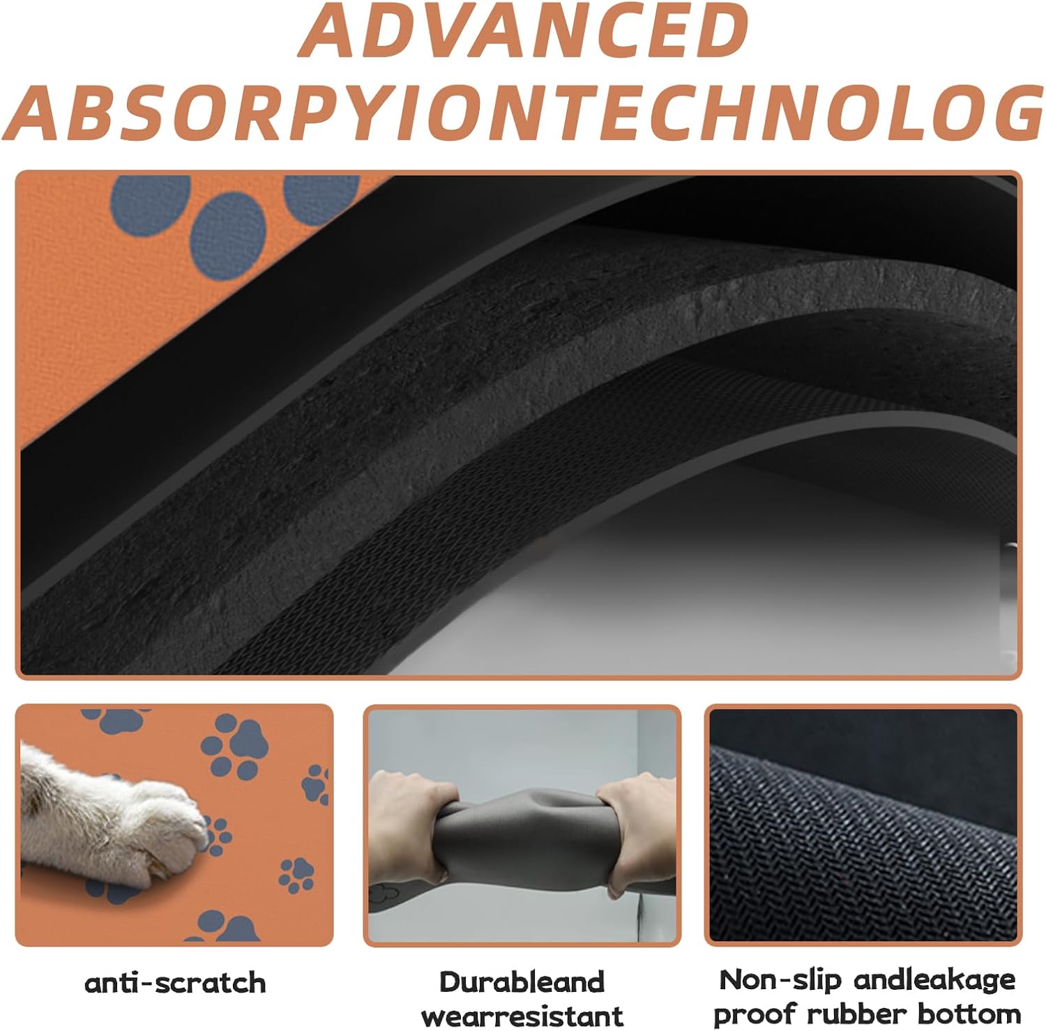 12"×20" Dog Food Mat-Absorbent Dog Mat for Food and Water, No Stains Quick Dry Cat Bowl Mat Non Skid Feeding Mat with Footprints for Messy Drinkers Orange