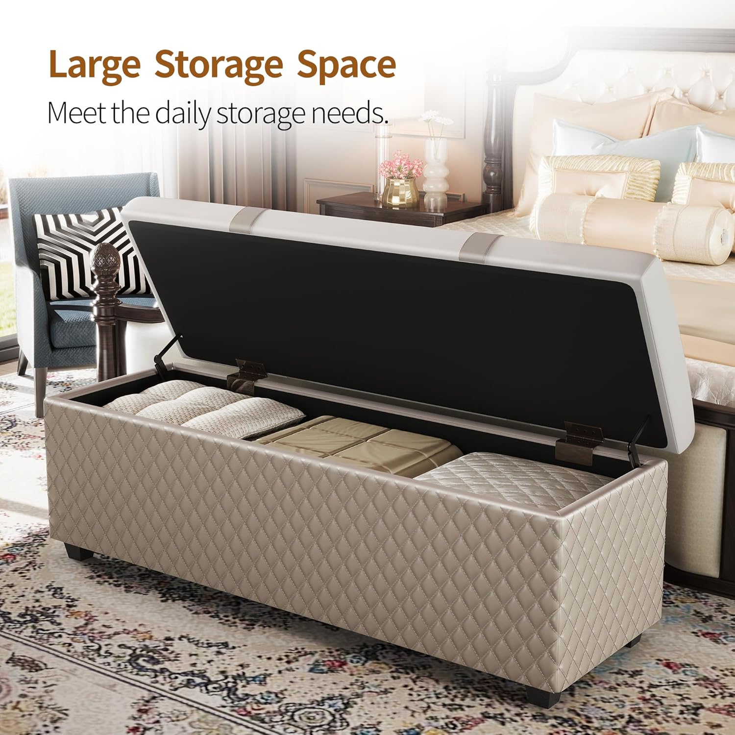 Ottoman with Storage 38 inches, Furniture End of Bed Storage Benches, Long Ottomans Bench with hinged lid, Bench seat Trunk for Foot Rest in Bedroom, Living Room (Multicolor)