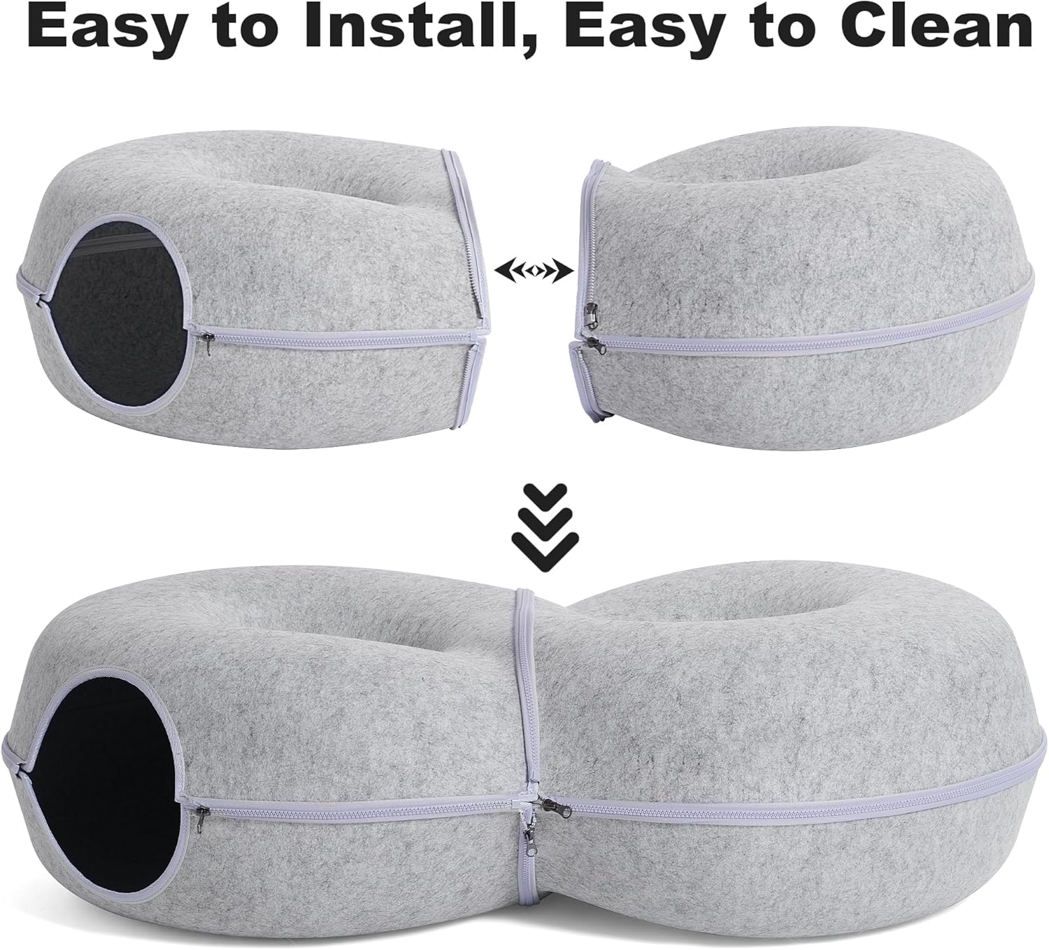 - Easy to Store And Clean: The tunnel cat bed is installed and disassembled with zippers, which is easy to operate and carry. In daily life, use a hair scraper and wet wipes to simply clean it up to make it tidy and clean