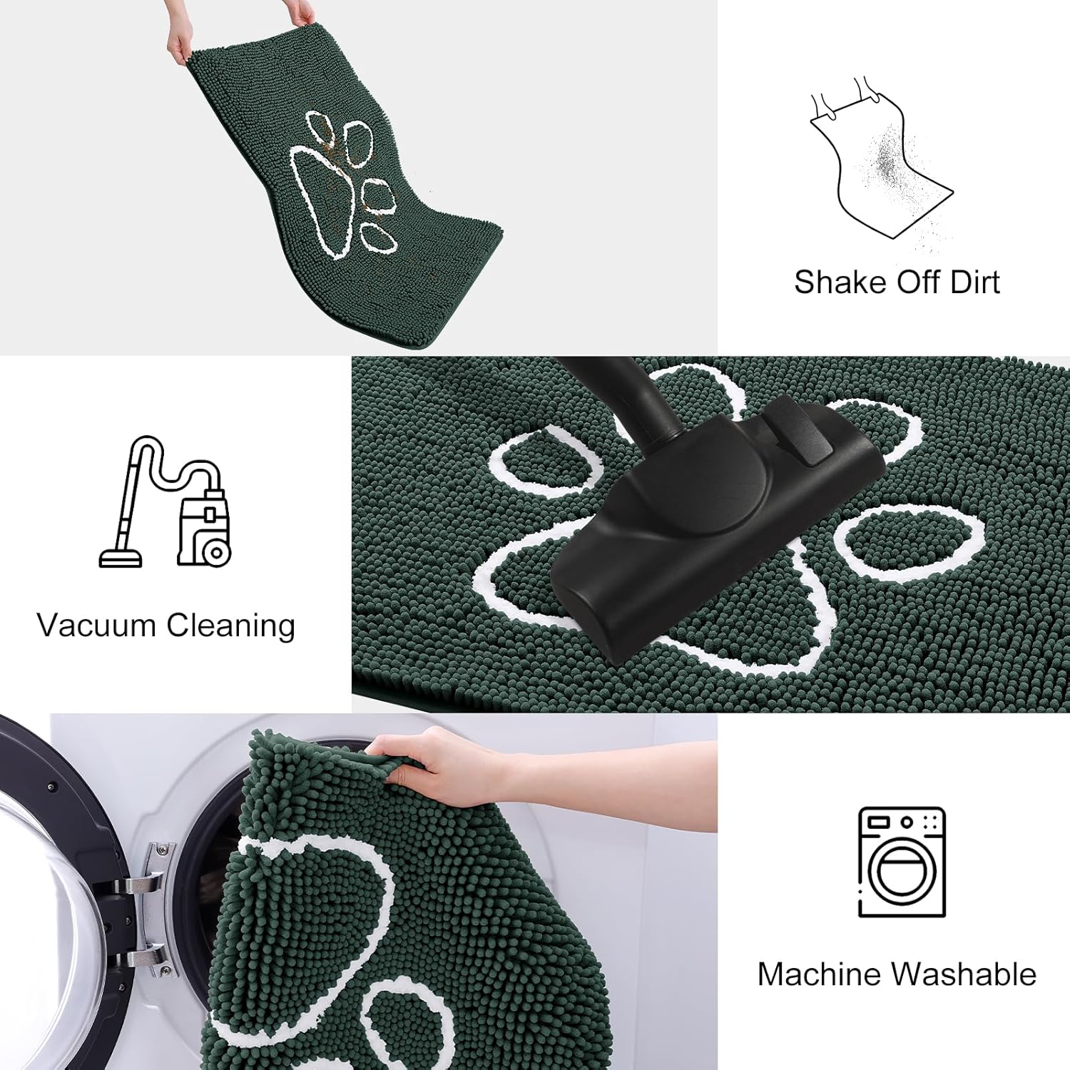 Smiry Dog Door Mat for Muddy Paws, Absorbent Dirt Trapper Non Slip Quick Dry Washable Chenille Mat for Mud Dogs, Entry Rug for Indoor and Outdoor (70x24 Inches, Green)