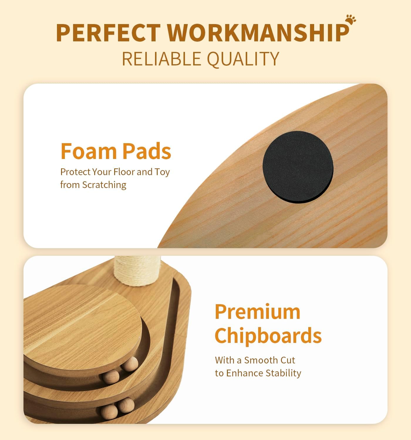 - 【3-Tier Cat Toy Board】:The cat scratchers pole is designed with 3 levels of tracks and 4 moving balls to attract kitty’s attention! Your cat will adore batting, swatting, and pouncing the playing balls as they entertain their natural instincts to hunt.