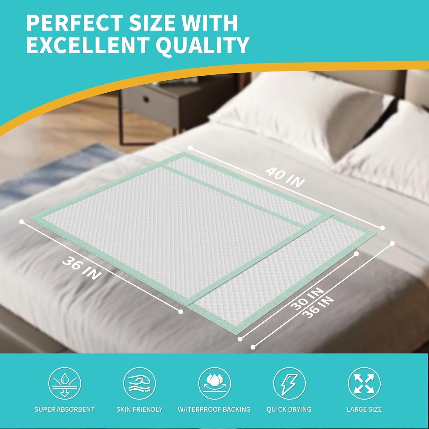 - BREATHABLE & COMFORTABLE: The surface of this disposable incontinence bed pad is made of super soft diamond shaped non-woven fabric to provide better comfort to the touch so that the skin can stay dry and provide comfortable sleep throughout the night