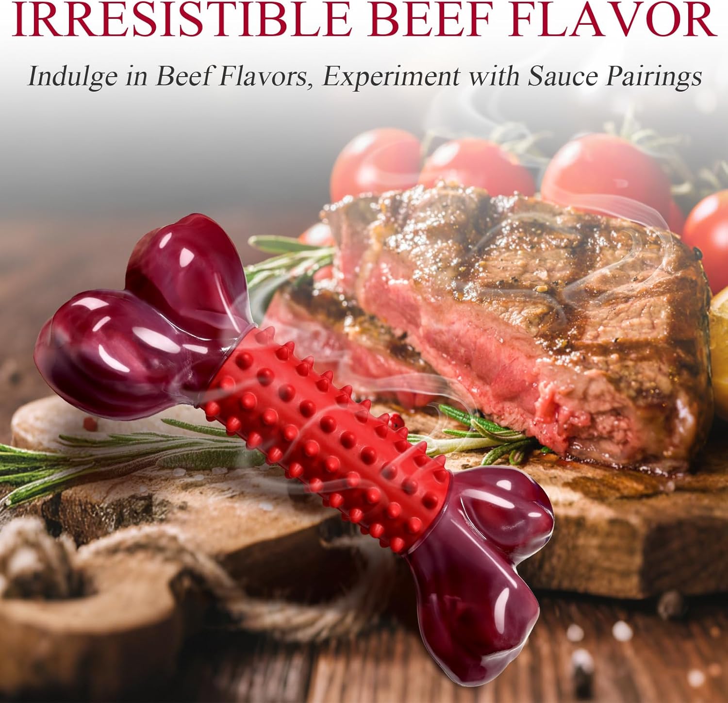 - ATTRACTIVE BEEF FLAVOR: Giving off a delicious beef flavor, these chew dog toys appeal to dogs' senses, making them a go-to for playtime. For even more fun, you can apply a thin layer of peanut butter to the toy, capturing your dog's attention and keeping them engaged during playtime.