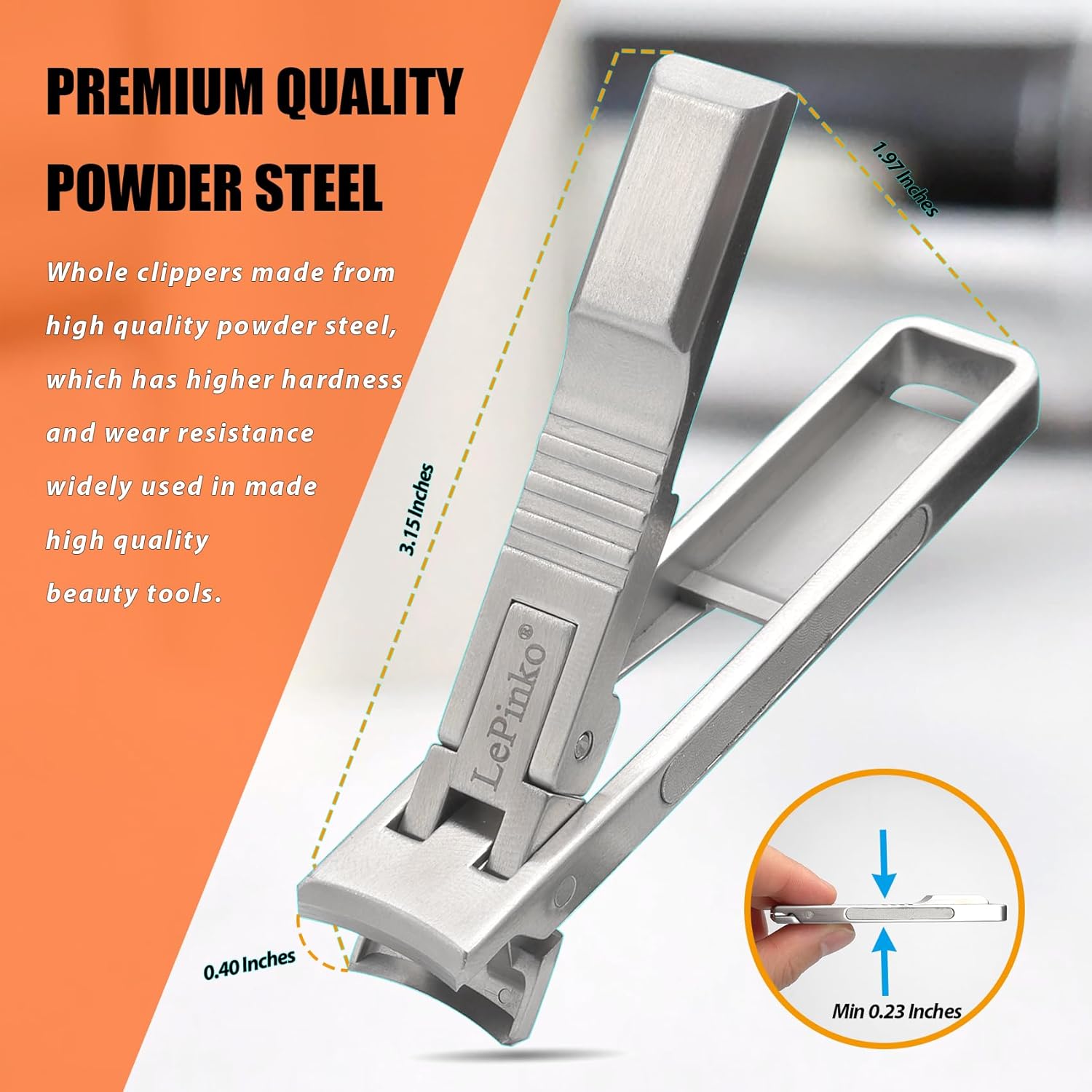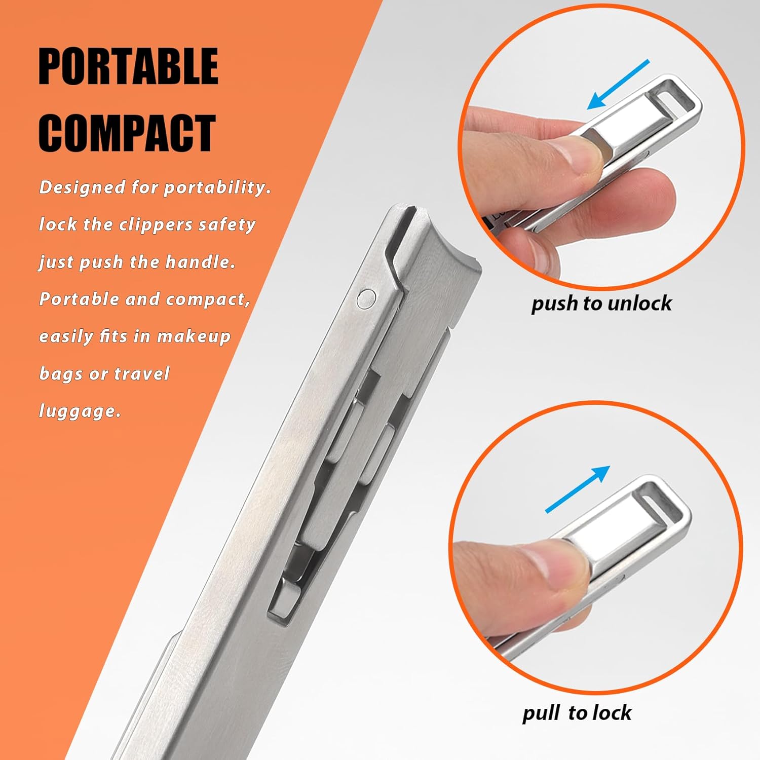 - Portable Compact - Designed for portability. The thinnest part of this nail clipper is just 0.23 Inches, lock the clippers safety just push the handle. Easily fits in makeup bags or travel luggage.