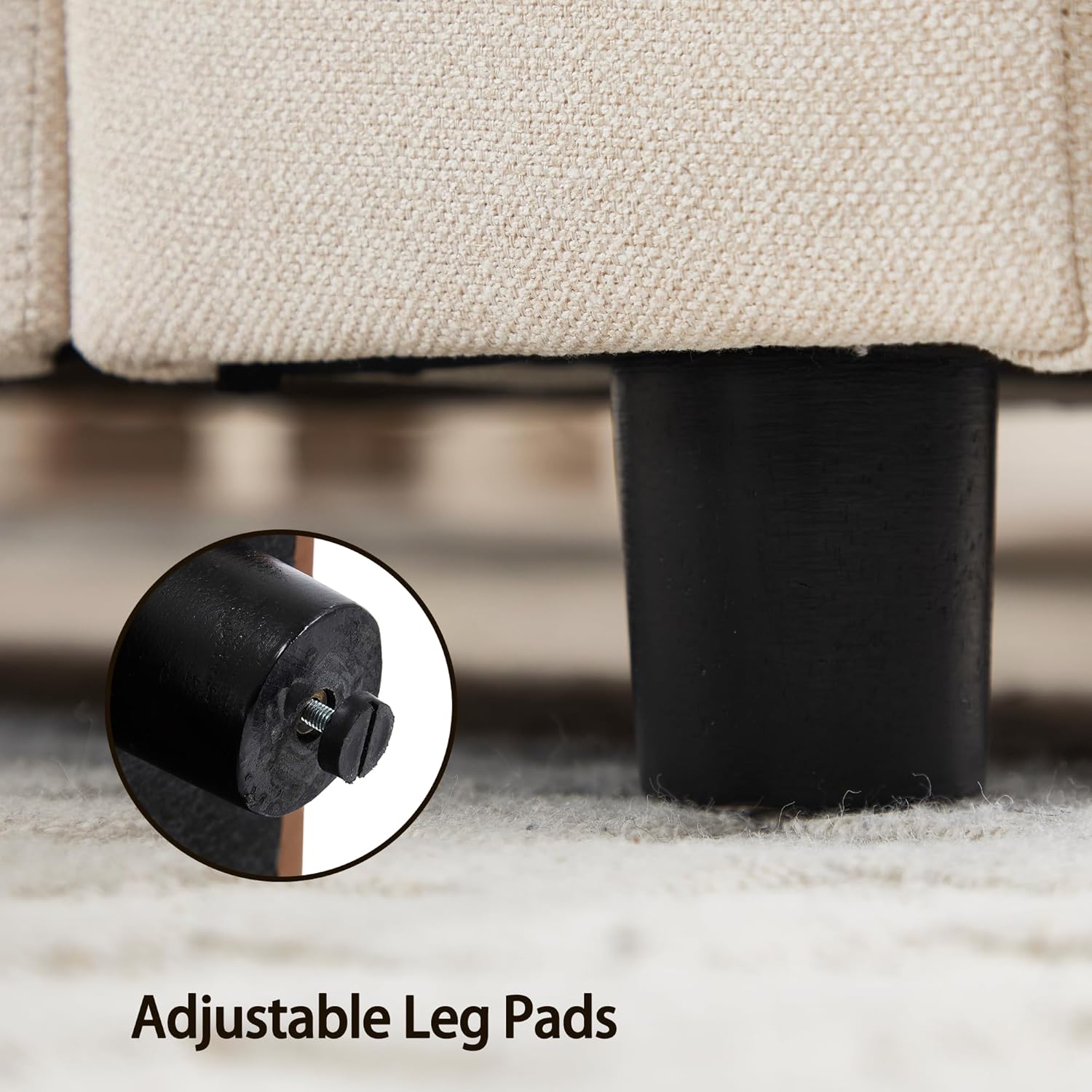 - STURDY CONSTRUCTION - Solid wood legs with adjustable pads ensure stability and protect the floor from scratches. The legs are esay to assemble