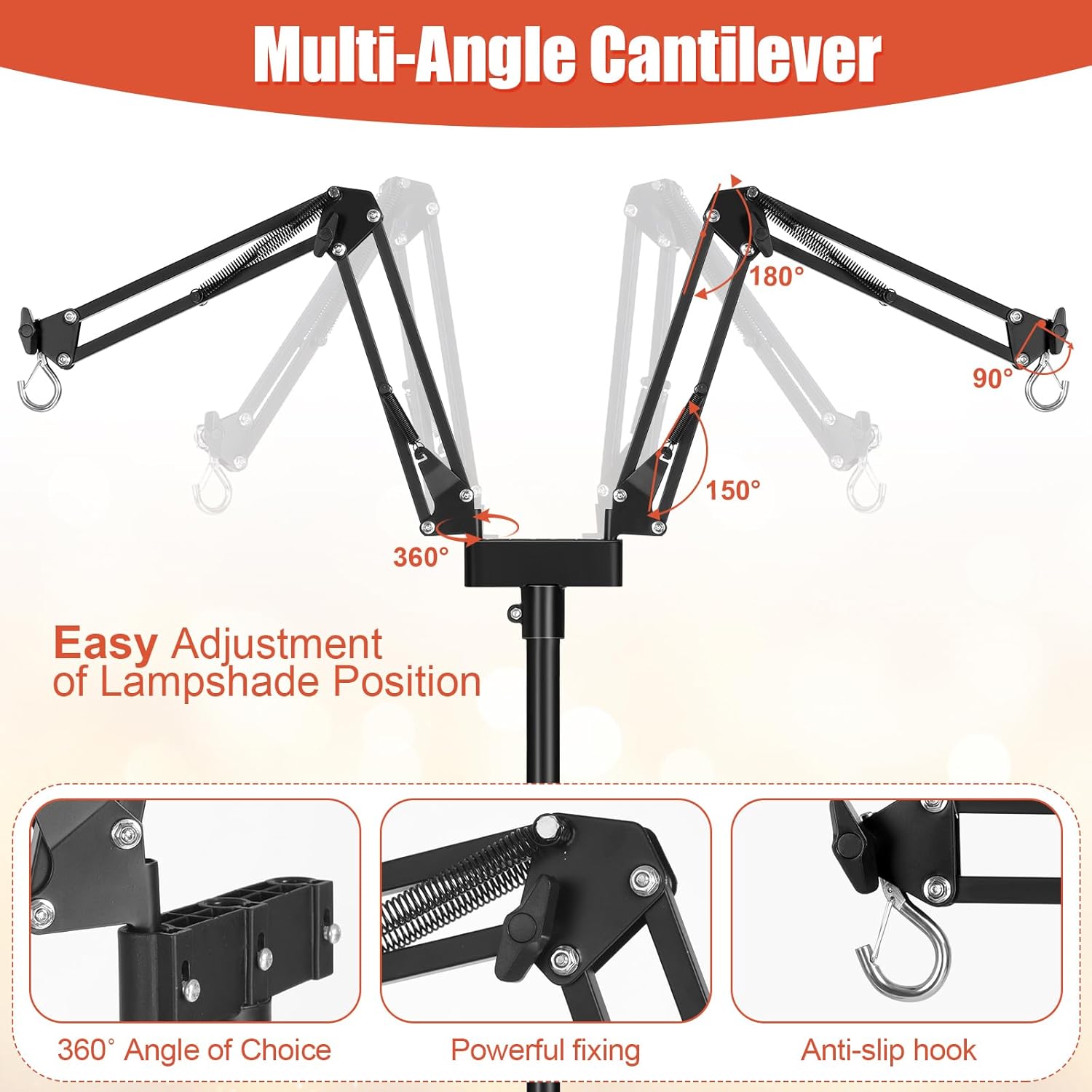 - 【Multi-angle Double Cantilever】: The reptile lamp stand features a unique dual-arm design that enables 360-degree rotation and 180-degree folding adjustments for each arm. This allows you to conveniently suspend and adjust two light fixtures simultaneously, including heat lamps, UVB lights, and lighting fixtures. Tailor the positioning to provide your pet with optimal coverage and comfort, ensuring the best basking conditions for your bearded dragon,snake,turtle,gecko,chameleon or any other reptile.