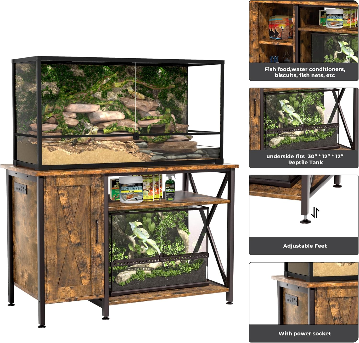 40-120 Gallon Reptile Tank Stand with Power Outlet, Terrarium Stand with Storage Cabinet, 48" X 24" Tabletop, Reptile Terrarium,Turtle Tank Rustic Brown PG08XYN