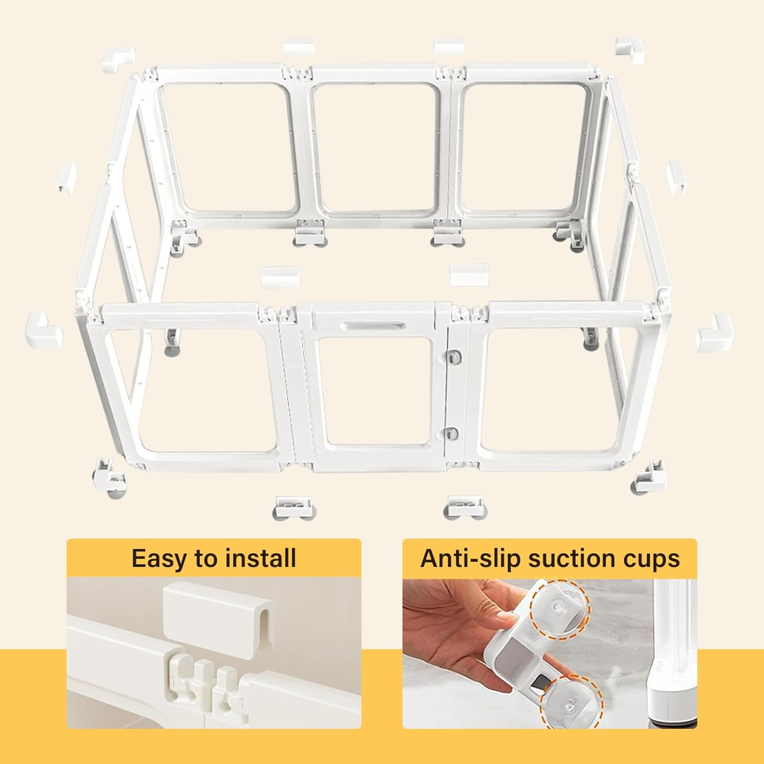 - Stable & Safe for Active Pets: Featuring non-slip suction cups and interlocking joints, this clear dog playpen stays firmly grounded on hardwood, tile, or carpet. The smooth edges and escape-proof height (23.6") ensure worry-free playtime indoors.