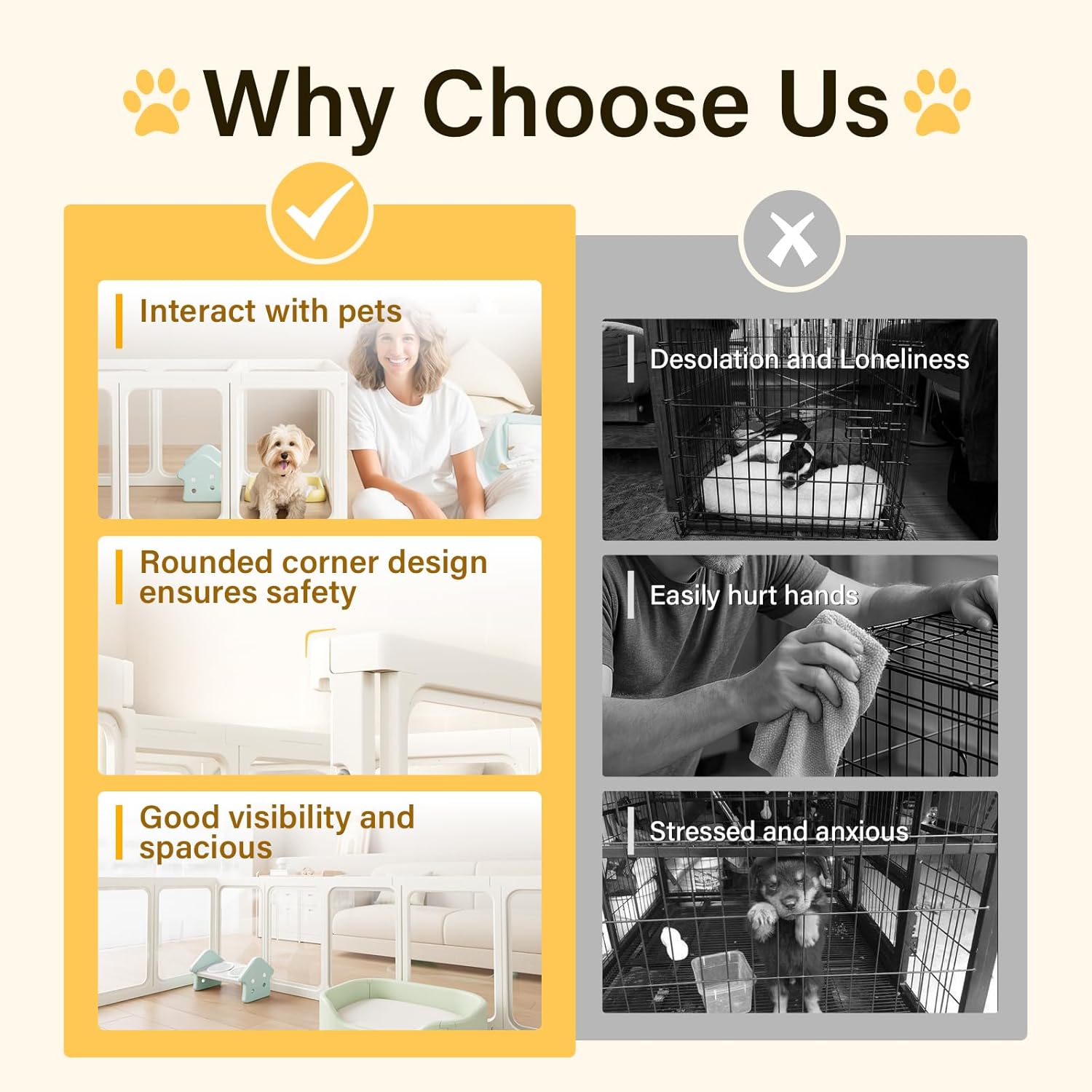 - Easy Clean & Lifetime Support: Wipe down the clear dog play pen surfaces with a damp cloth—no stains or odors linger. Backed by a lifetime warranty and 24/7 U.S.-based customer service, we guarantee a pet-friendly solution that grows with your family.