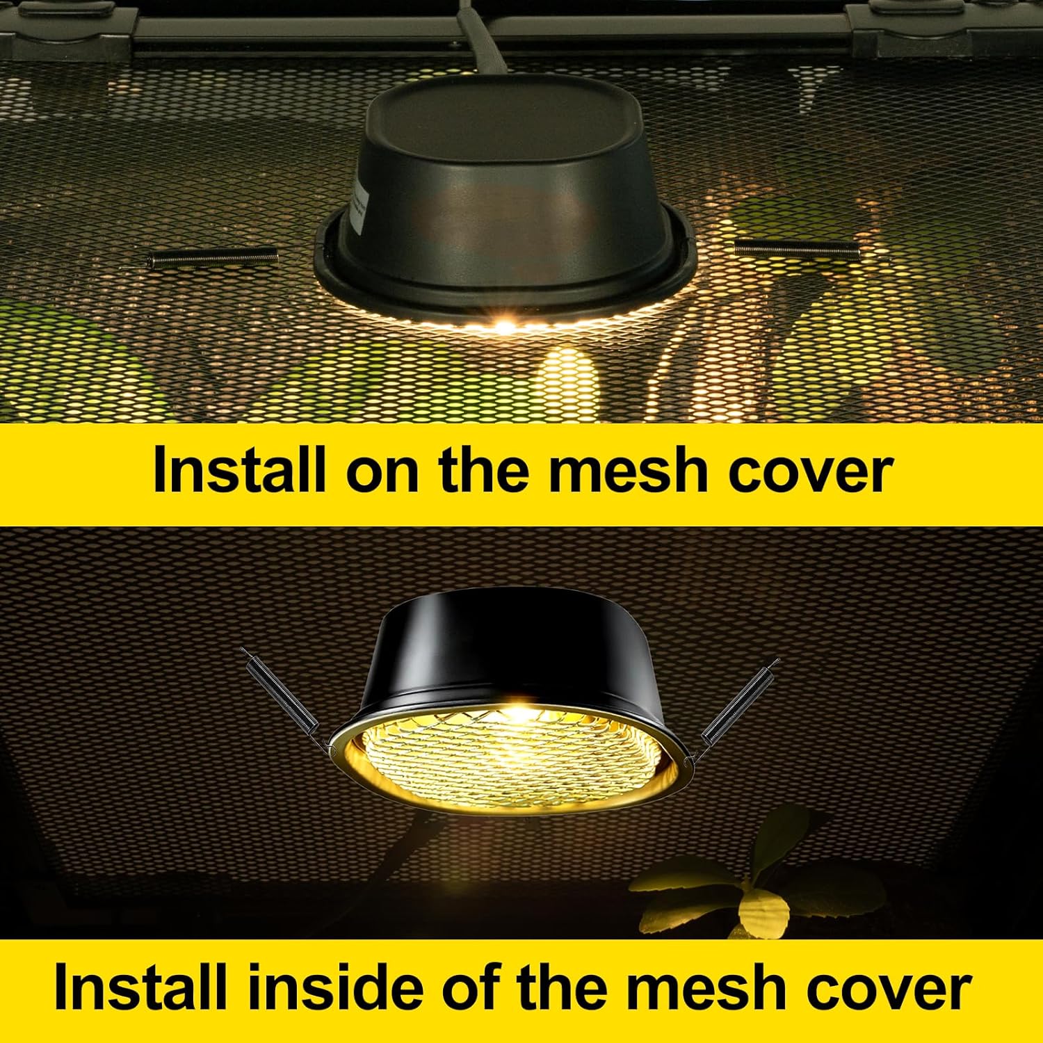 - Secure Spring-Loaded Mounting: The spring-equipped reptile lamp fixture firmly holds onto terrarium mesh lids. Installs above or below mesh surfaces with tool-free clamping for versatile habitat configuration