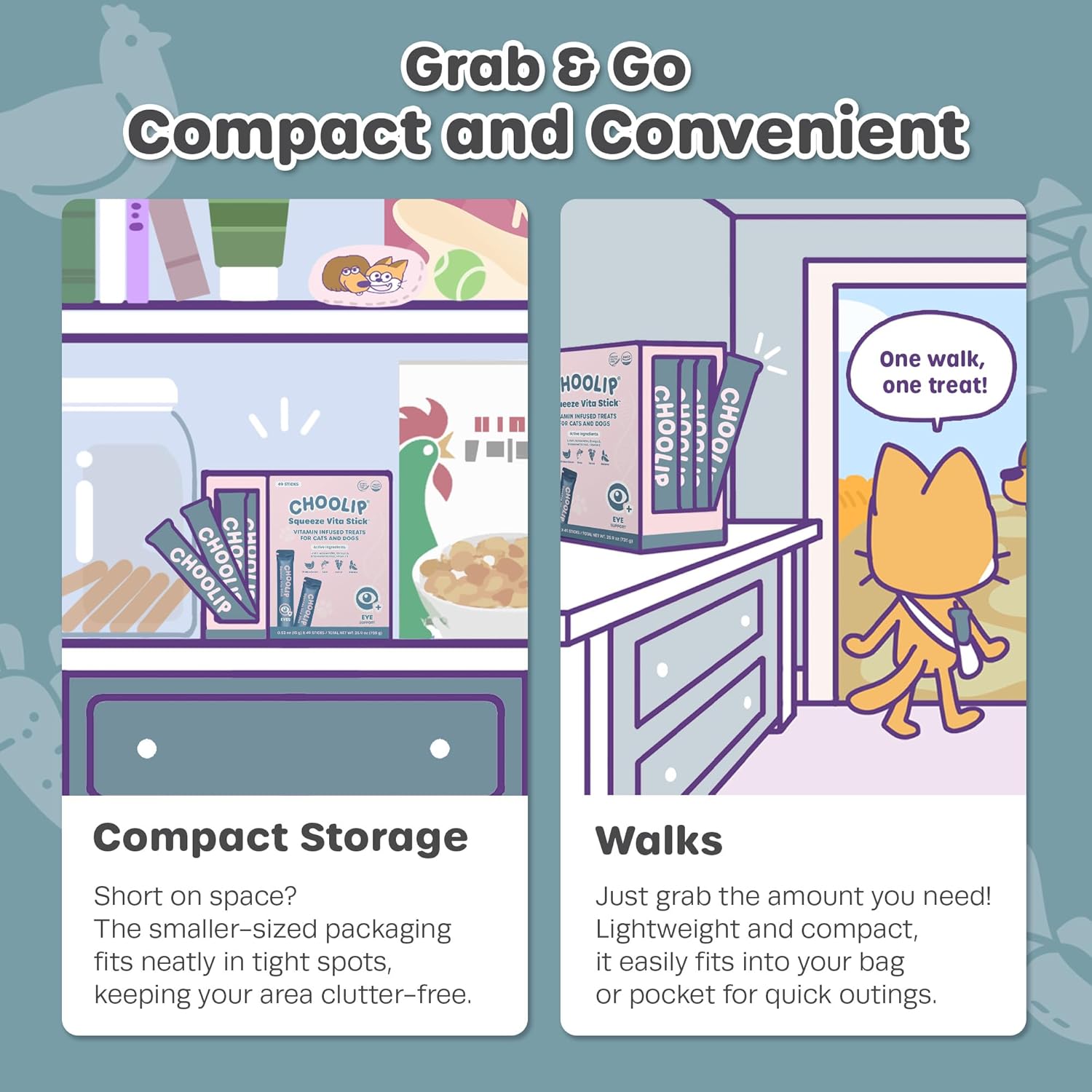 - COMPACT DISPENSER PACK: This Eye Support pack includes 49 sticks to treat your cat or dog. Itโs perfect for quick, grab-and-go use, easy to carry in a bag for trips, or convenient to keep near your pet supplies.