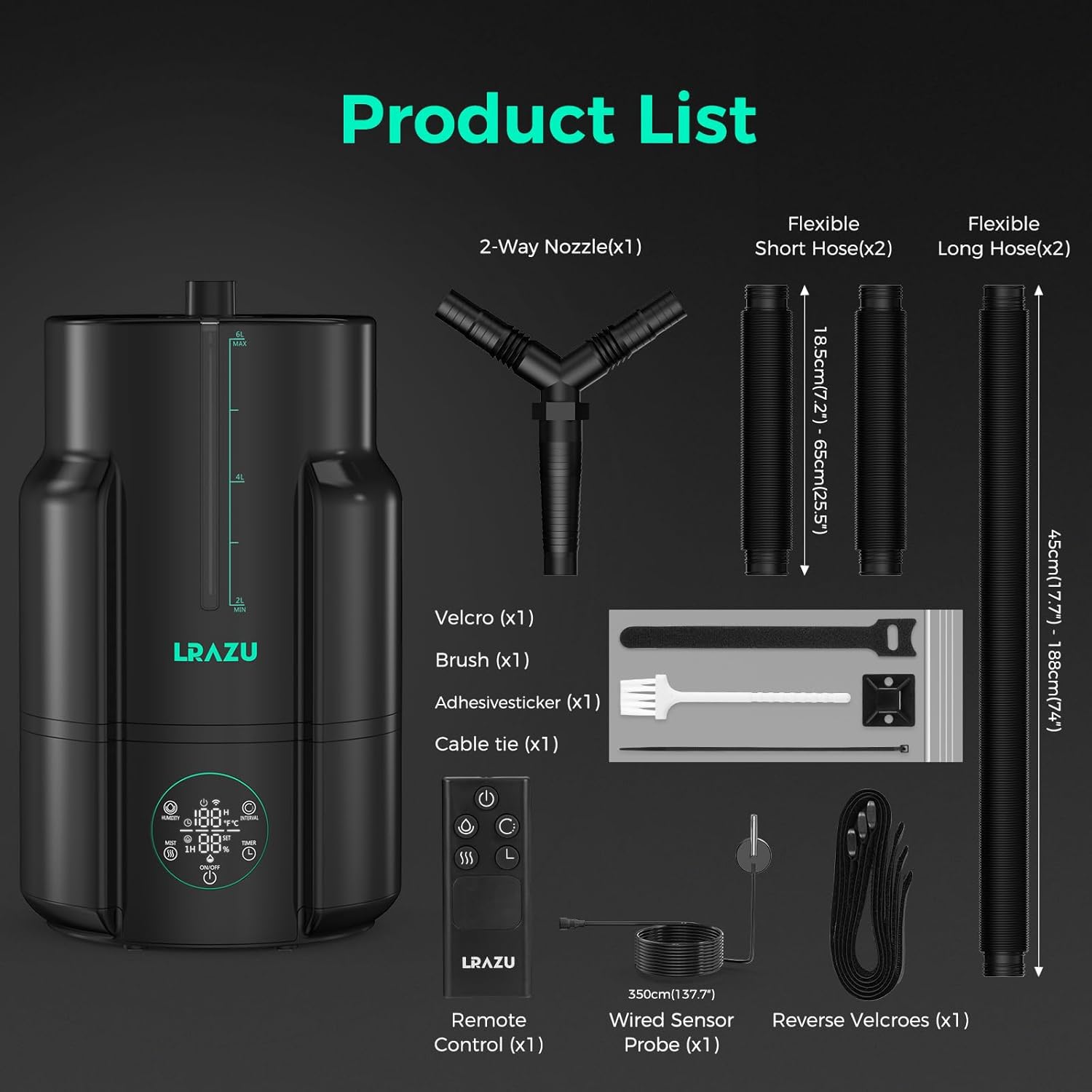 - 24-Hour Timer for Large Spaces: This hose-equipped humidifier features a customizable 1-24 hour timer (set in 1-hour increments). Its 6L tank delivers up to 500 mL/h of mist, running all day for whole-room coverage—ideal for grow tents, bedrooms, offices, basements, and homes.