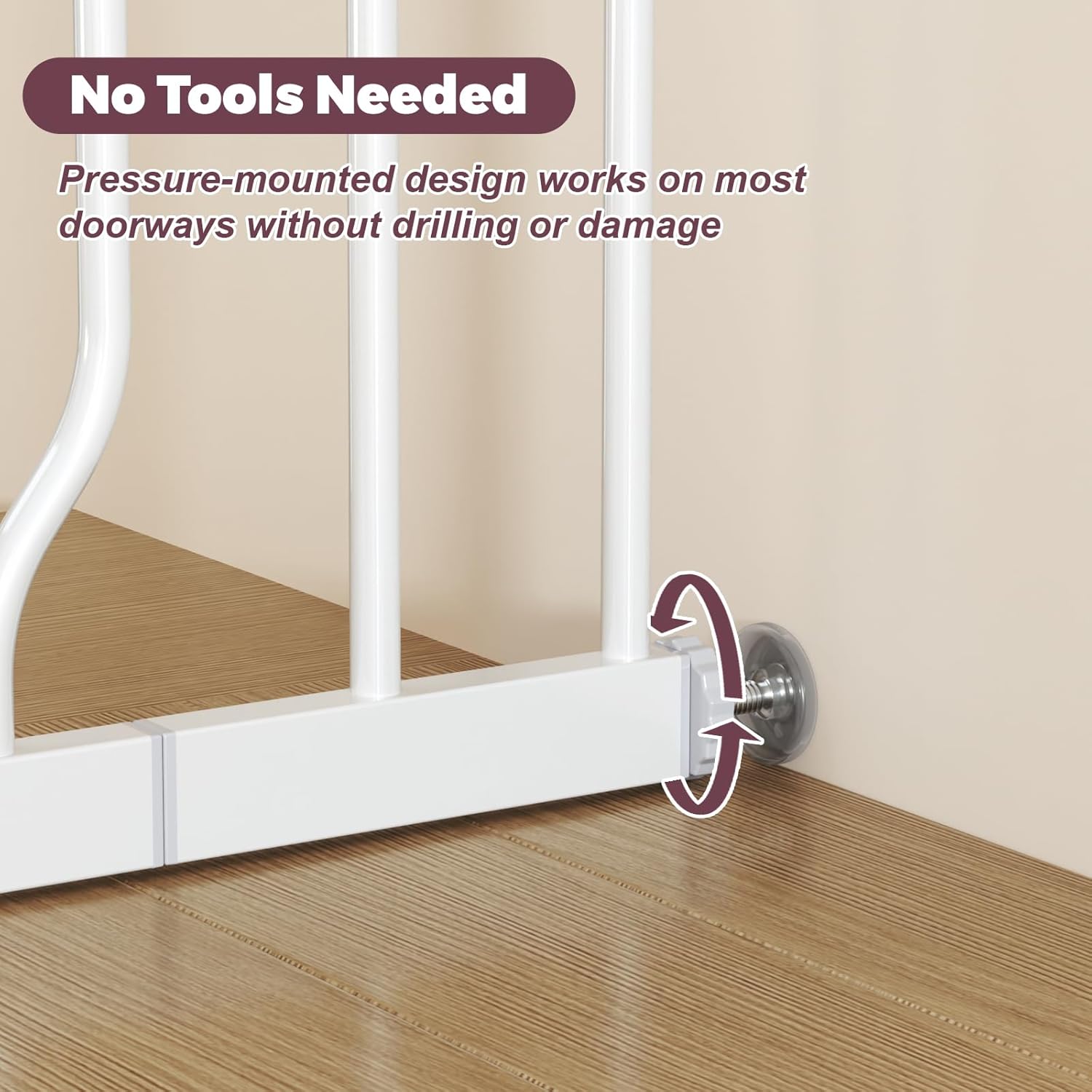 - Tool-Free Installation: The pressure-mounted design provides a secure hold while protecting your walls and doorways from damage, ideal for renters and hassle-free setups. The dog gate offers a quick, temporary solution that's both safe and convenient