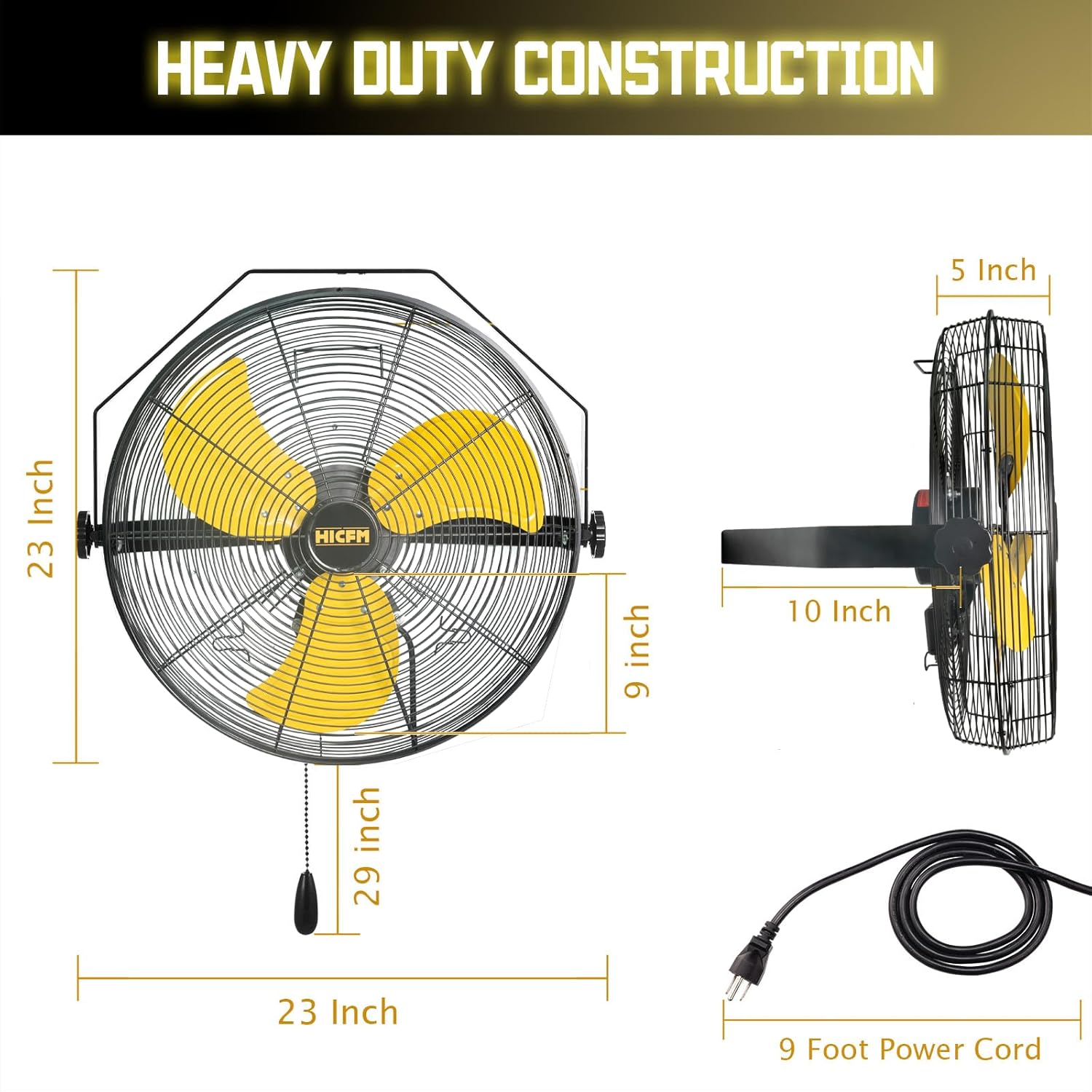 - ăWind Noise Performanceă: HICFMâs new technology contributes high velocity airflow up to 10.2 m/s yet low noise in this wall mounted fan black. 3-Speed adjustable with pull chain control featuring three different speeds. In high speed running, noise is only 64 dB on 3 ft, and 57 dB on 6 ft away from the fan, less noisy than other fan.