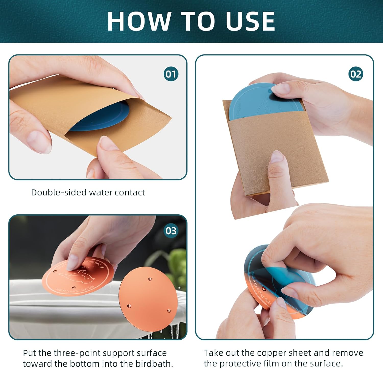 Bird Bath Copper Disk – 99.99% Pure Copper Water Cleaner, 1 mm Thick with Stable Triple-Point Support, Safe Natural Solution for Outdoor Birdbaths Bowls, for All-Season Use,Bird,2pcs