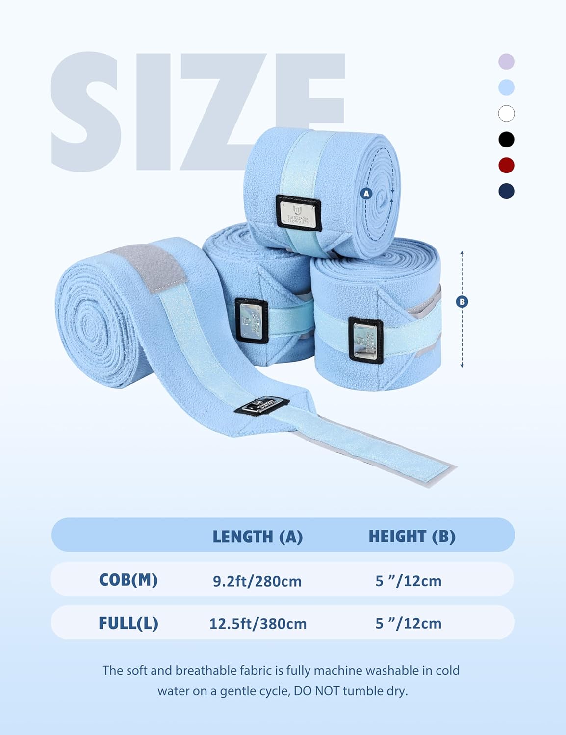 Harrison Howard Horse Polo Wraps Upgrade with Bling Leg Wraps for Horses 4-Pack Fleece Leg Wraps Stable Supplies Ice Blue M