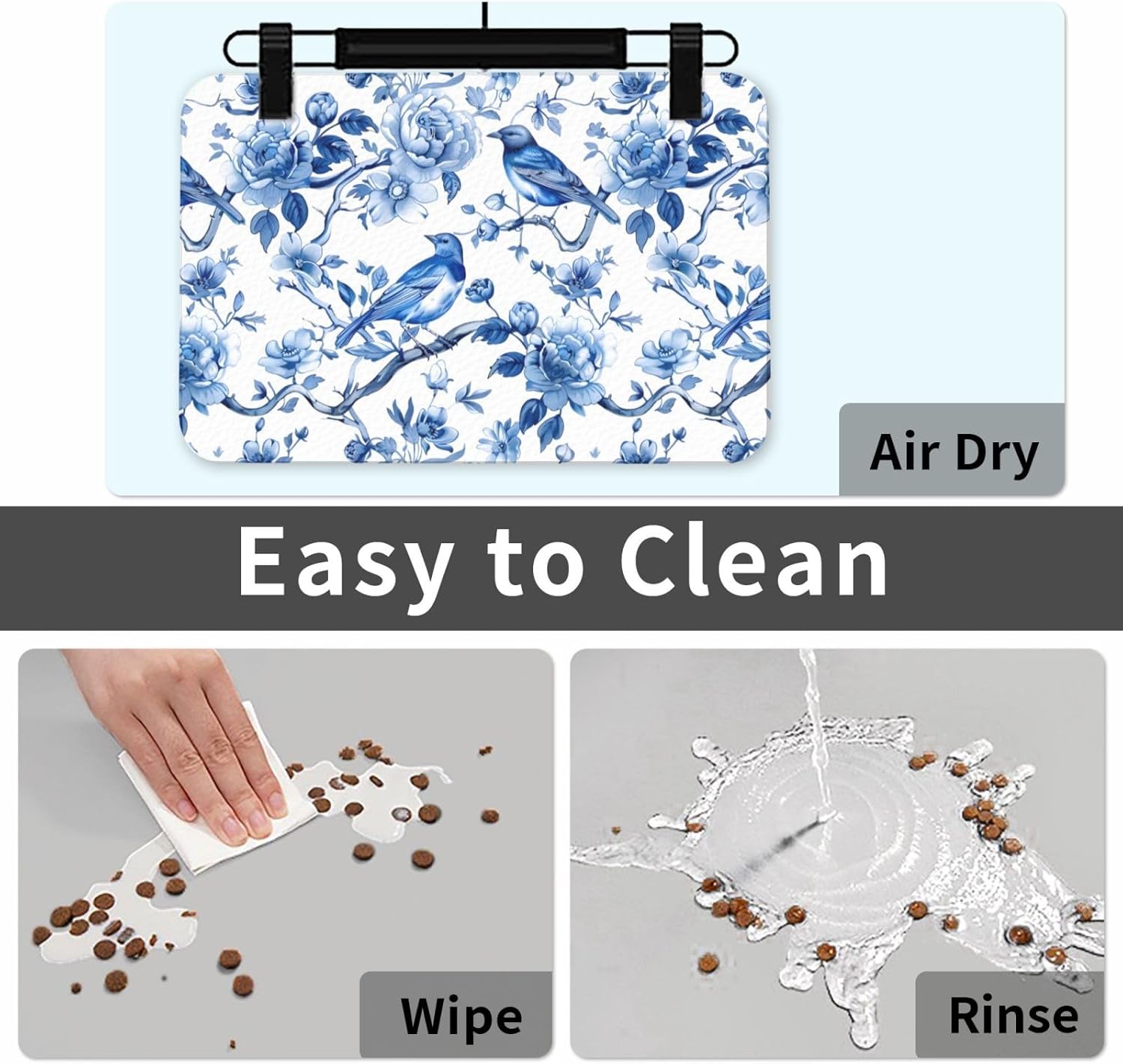 Chinoiserie Floral Birds Dog Food Mat Absorbent Bowl Mats No Stains Quick Dry Waterproof Pet Cat Placemats for Food and Water, 30x45cm