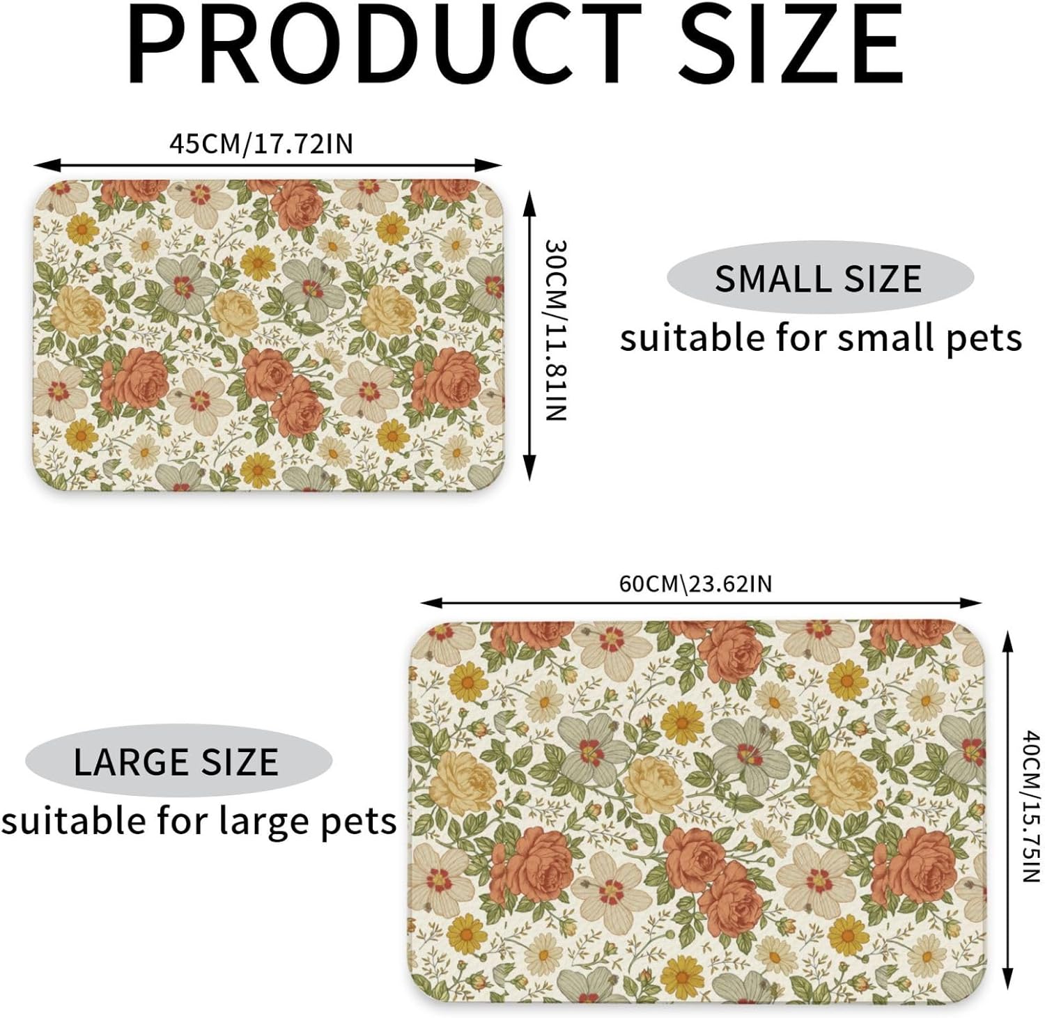 Delicate Floral Dog Food Mat Absorbent Bowl Mats No Stains Quick Dry Waterproof Pet Cat Placemats for Food and Water, 30x45cm