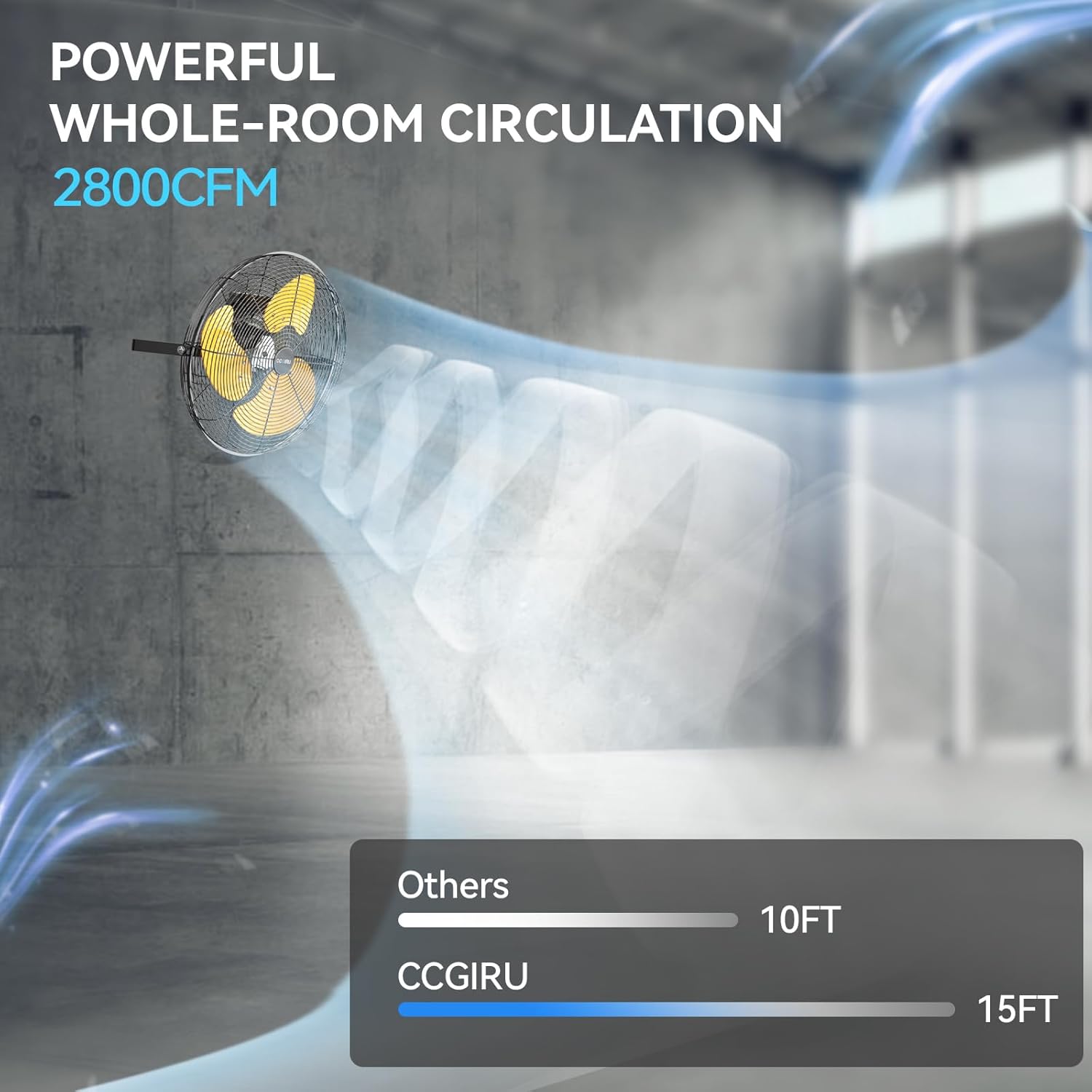 - 3 Speeds Dynamic Airflow: Upgraded the motor on the original basis, making the 20-inch outdoor industrial wall mount fan more powerful than before. In high speed, the blowing distance can reach to 30 ft. High velocity fan runs at 5400 CFM with pull chain in high speed, medium 4300 CFM, low 3900 CFM